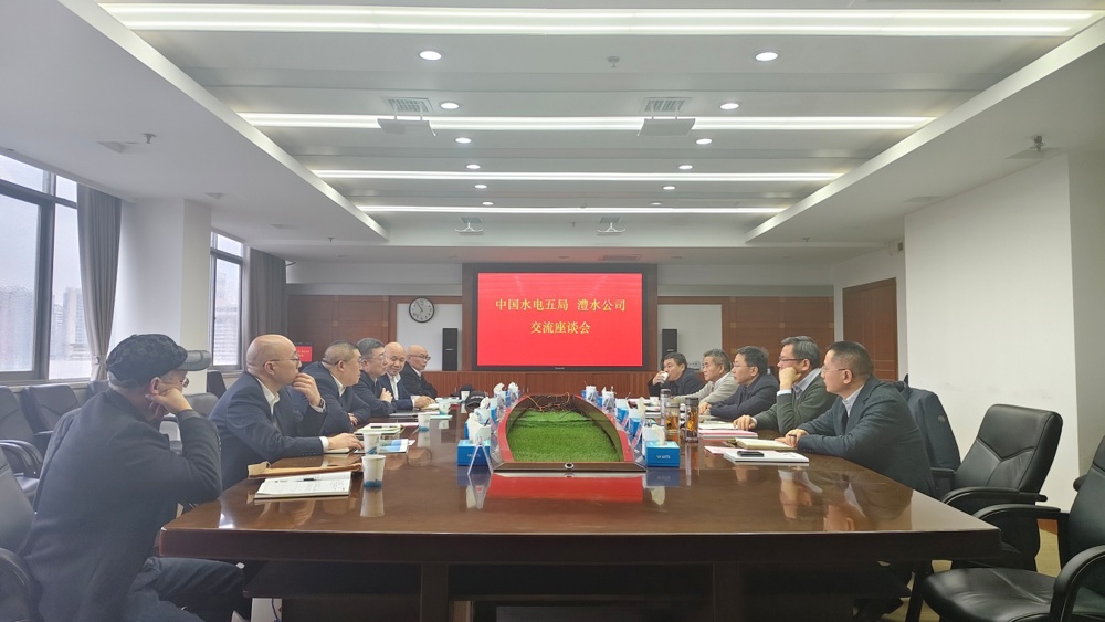 1月12日上午,中國水利水電第五工程局有限公司黨委書記、董事長李崢一行到公司交流座談,雙方圍繞水利工程建設(shè)管理、新能源項目開發(fā)等進行交流,公司黨組書記、董事長徐磊主持座談會。